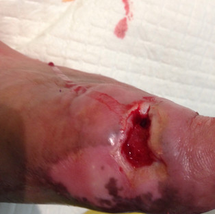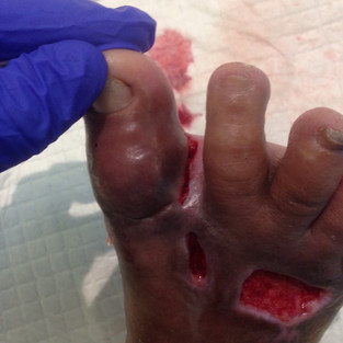 AR, 65/F, diabetic, with multiple infected foot ulcers.