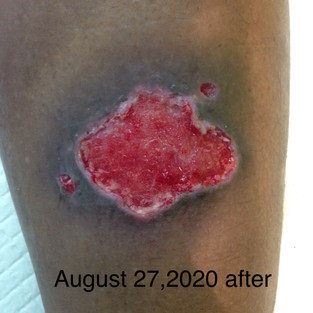 This wound started as an infected boil that became a venous stasis-type of ulcer once the infection was controlled. Besides ultrasound assisted debridement with Prontosan, we also did 2-layer compression therapy and oral hemorrheologic medication for this wound. We managed to heal this wound in 2 months time.